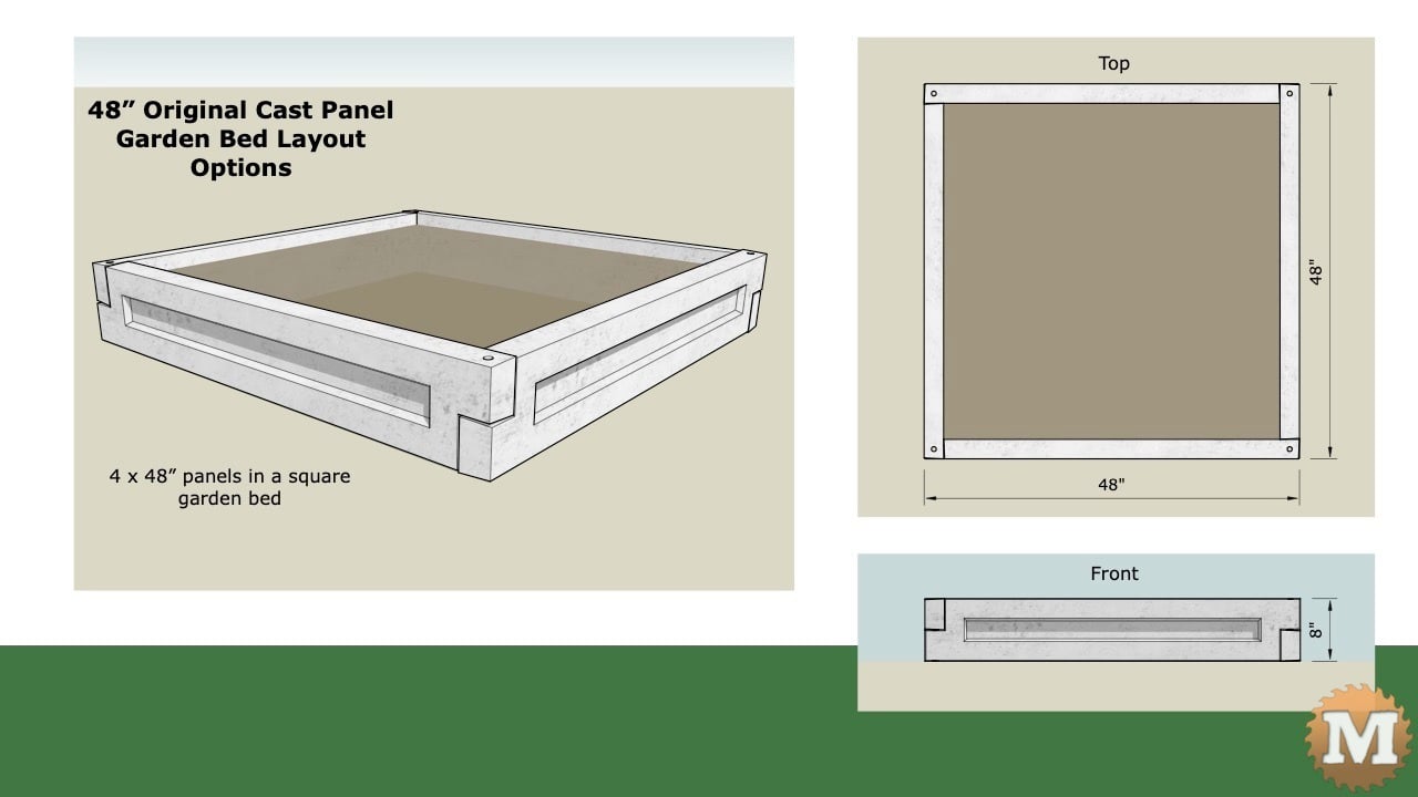 Here’s 4 x 48″ Original Panels in a square bed. This bed layout (plus rectangular, L-shaped, and double height) can be cast with a single 48″ mold. And this will take a fraction of the time to cast with a 2-PACK or 4-PACK.