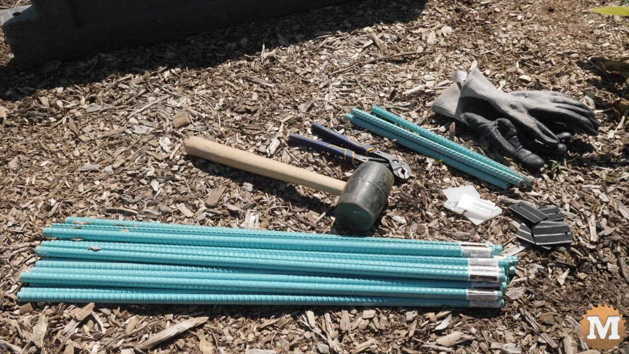 To finish, I’ll tap the rebar into the ground with a rubber mallet.