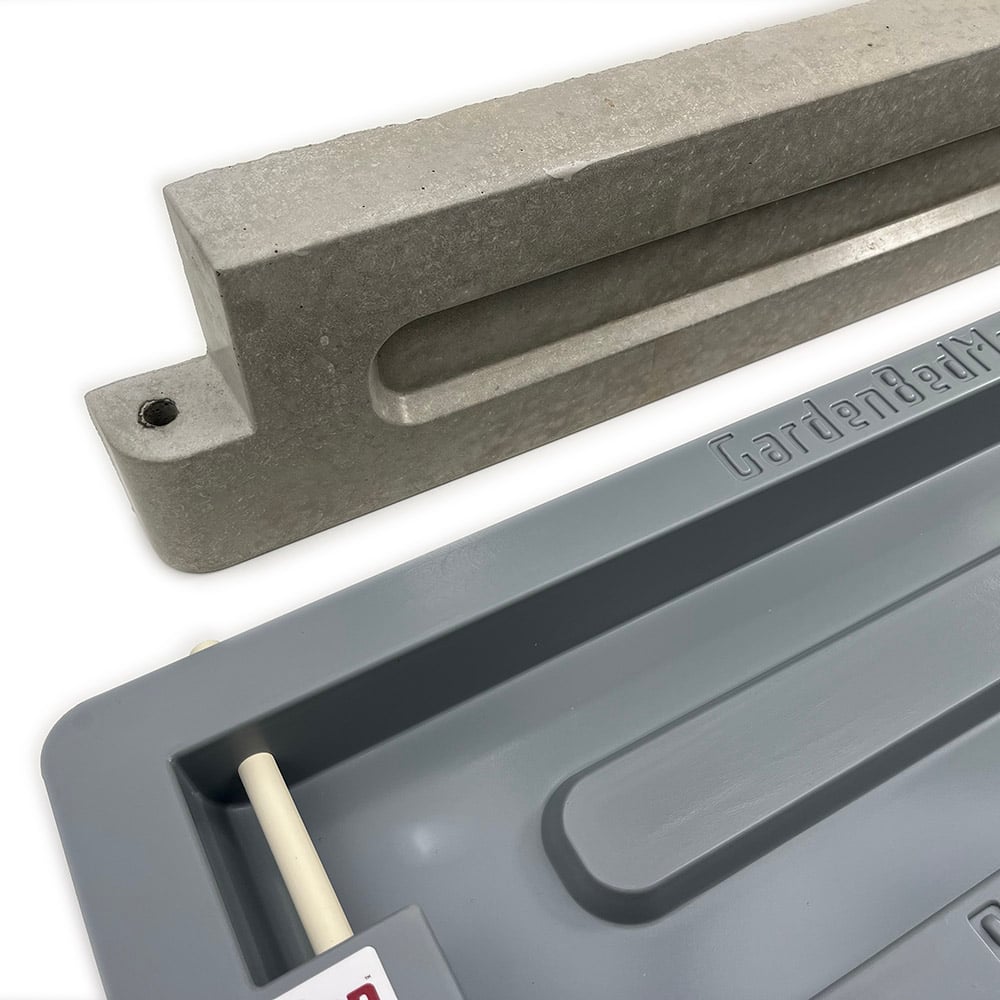 Get the 4 pack for additional savings and lower shipping costs PLUS increase the number of castings you can make at once! Cast your own Concrete Raised Bed Blocks to make a rot-proof long-lasting Garden Box. This durable vacuum formed concrete mold will cast a garden bed panel that is 24″ long x 8″ tall x 2-1/2″ thick. Removable plastic pipes form a hole on each end of the panel so they can be pinned together with rebar. These ABS plastic forms are a thick 1/8″ and will last for many, many castings. This new ready-to-pour mold has the same overall dimensions as the wooden molds I introduced in my Youtube series. And the castings made from this mold will link together with those first two. Read the Instructional Blog Post. This ABS (Acrylonitrile Butadiene Styrene) is a very tough and durable material and perfect for casting concrete.