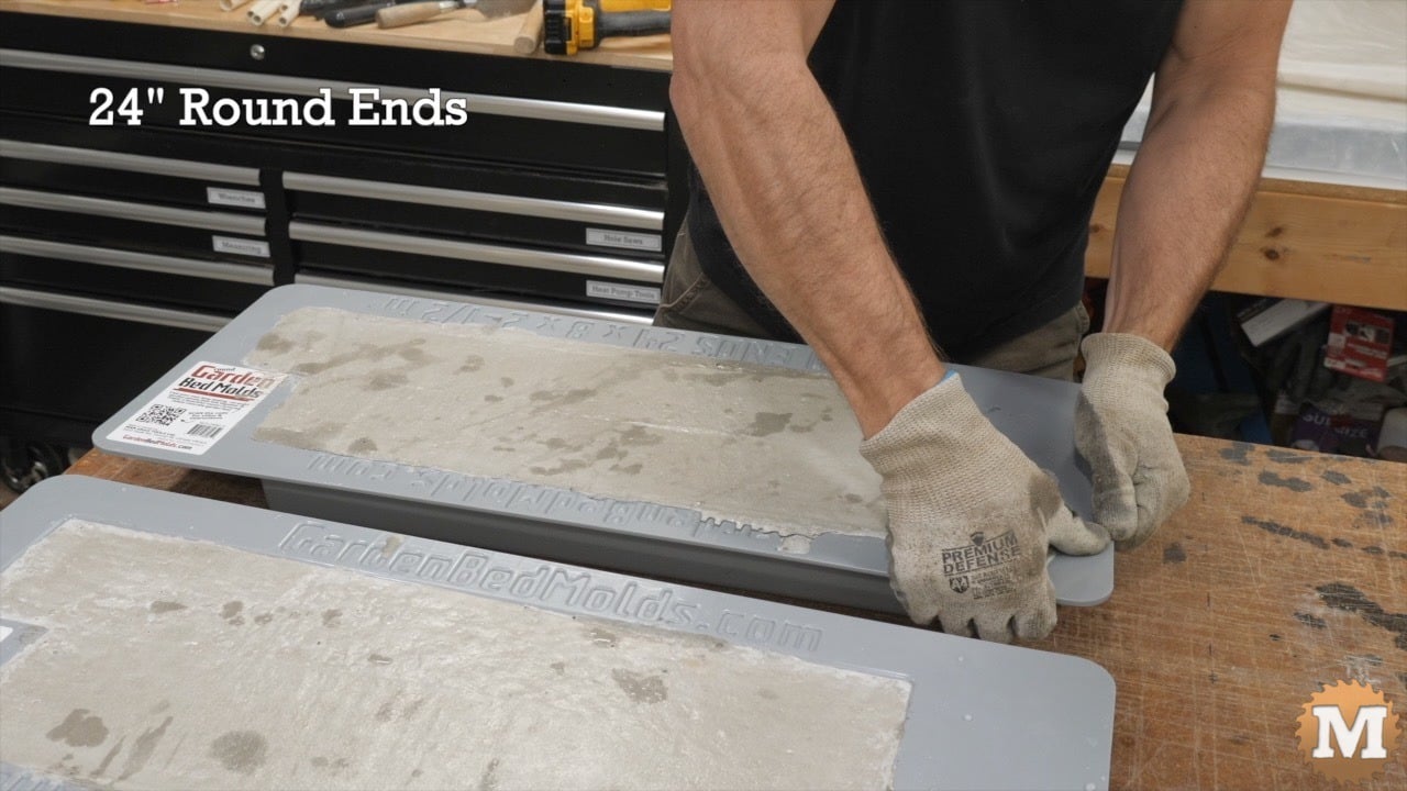 The 24″ Rounded End Reusable Plastic Concrete Mold is designed to cast concrete panels with smooth, rounded ends, making it easy to create clean corners and transitions in raised garden bed layouts.