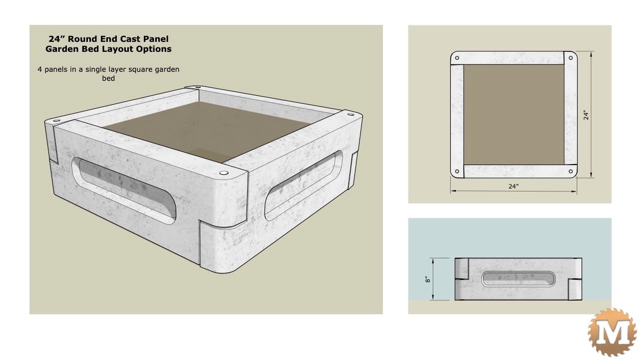 Here’s 4 x 24″ round end panels in a square bed. This bed layout can be cast with a single 24″ mold.