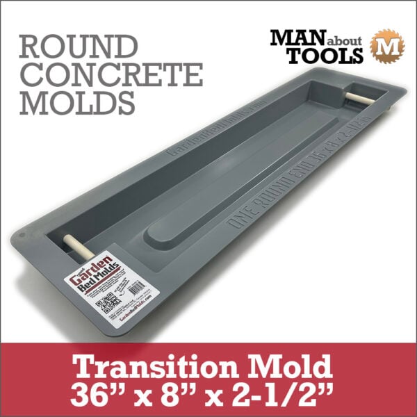 This single 36″ transition mold is shipped in it’s own box. This mold has one rounded end and one square end so it can connect to a round and an original concrete panel.